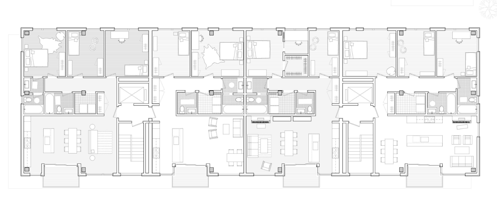 In the US, these buildings are often illegal by default. Eliason is clear that this is not because they are unsafe or untested, but because our codes reflect outdated assumptions rather than modern life-safety systems like sprinklers, alarms, and fire-rated assemblies. The result is housing that skews toward studios and one-bedrooms, deep floor plates, long corridors, and higher costs; outcomes that feel inevitable but are, in fact, designed.