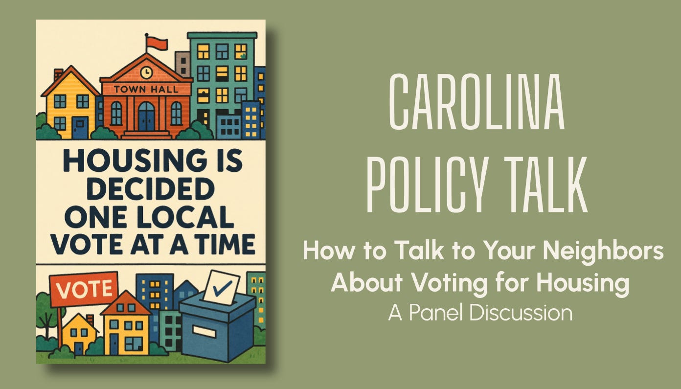 CAROLINA POLICY TALK: HOW TO TALK TO YOUR NEIGHBORS ABOUT VOTING FOR HOUSING