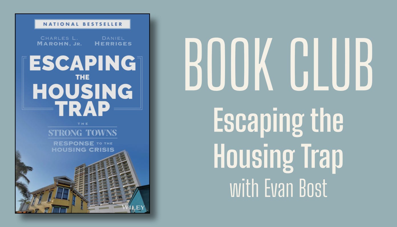 Join us for our October Book Club to discuss Escaping the Housing Trap by Charles Marohn and Daniel Herriges. This book