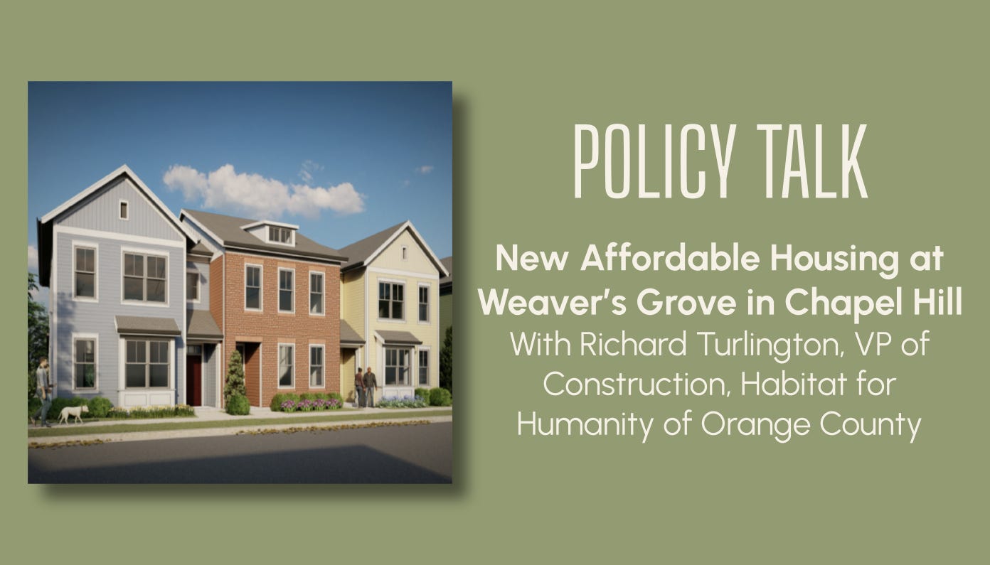 Join us to hear more about this Affordable housing project in Chapel Hill. We’ll be joined by Richard Turlington, the VP of Construction of Habitat for Humanity Orange County, for insights into building new Affordable homes.