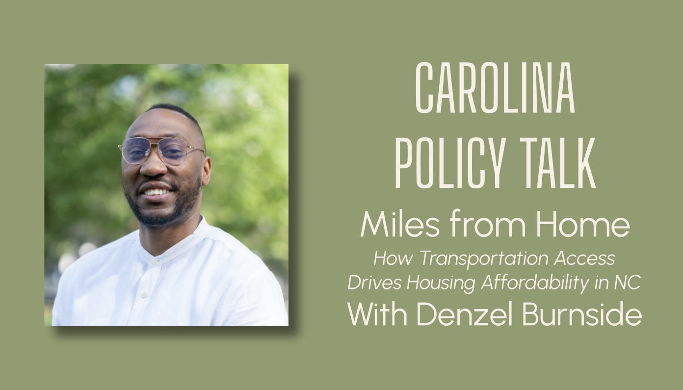 We’re excited to team up with the North Carolina Housing Table in July for our Carolina Policy Talk. NCHT CEO Denzel Burnside will lead this insightful discussion entitled, Miles from Home: How Transportation Access Drives Housing Affordability in North Carolina, which will explore how transit deserts, long commutes, and car dependency affect the cost and accessibility of housing. See more information and RSVP below.