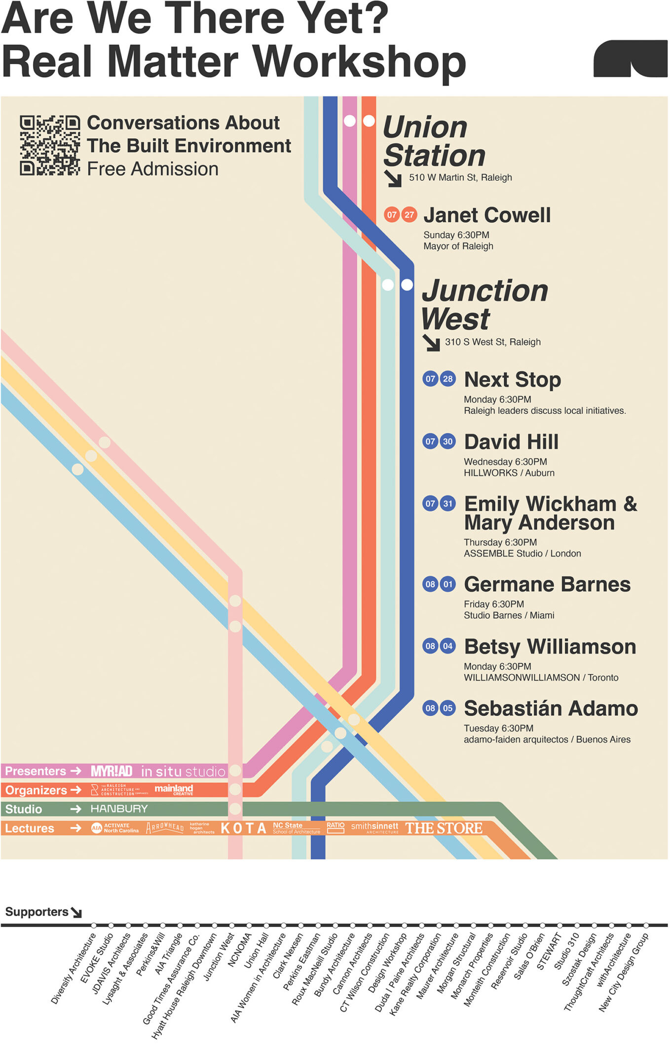 The North Carolina architect firm In Situ Studio hosts its annual Real Matter lecture series. The workshop, which is shaped by the lectures and panels, focuses on the relationship between the built environment and social issues.