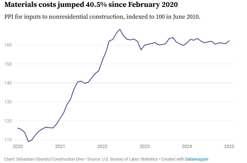 In addition, construction costs have skyrocketed, up nearly 50% since 2019, creating an even heavier burden. While some of those figures related to construction costs may shift in response to material tariffs or policy changes, the long-term trend is still clear.