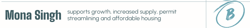 Mona Singh earns a B. She did not submit responses to our questionnaire, so we evaluated her based on public statements and interviews. She has identified housing affordability as a top priority and supports expanding multi unit housing, reducing parking minimums, and aligning higher density development with transit and infrastructure. While we would welcome more specificity around county level land use strategy, her positions reflect meaningful support for increasing housing supply and affordability in Wake County.