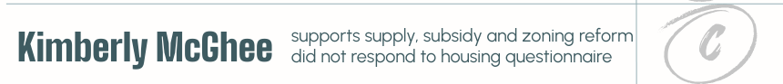 Kimberly McGhee earns a C. She did not respond to our questionnaire, so this grade reflects her public statements and interview responses. She speaks frequently and substantively about housing, particularly around preserving naturally occurring affordable housing, preventing displacement, and expanding public funding for affordability and homelessness response. While she clearly understands housing as a serious county issue, her platform centers on subsidy and preservation strategies and does not articulate a clear approach to expanding overall housing supply. A comprehensive pro housing strategy requires pairing affordability tools with consistent production across income levels, and we did not see that balance reflected in her public positions.