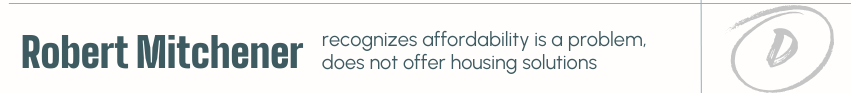 Robert Mitchener earns a D. While he acknowledges that Wake County faces a housing shortage and expresses support for affordable housing and nonprofit partnerships, his responses did not demonstrate a clear understanding of the core mechanisms that drive housing production or the County’s specific responsibilities in funding, land use coordination, and homelessness response. His emphasis on property tax relief and general reform, while helpful for some residents, does not address the structural supply and affordability challenges facing the region. We did not see a comprehensive or actionable housing strategy reflected in his answers.